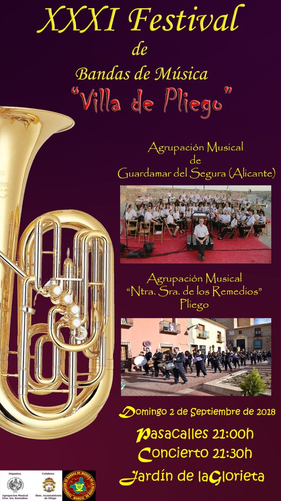 DOMINGO 2 DE SEPTIEMBRE XXXI FESTIVAL DE BANDAS DE MÚSICA “VILLA DE PLIEGO”